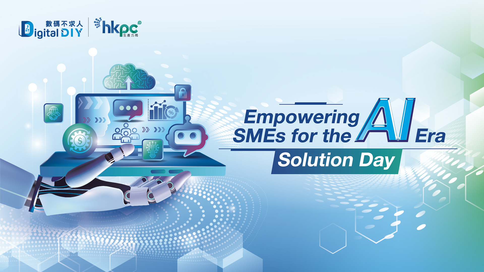 Organised by the HKPC "Digital DIY" Portal (DDIY), the "Empowering SMEs for the AI Era" Solution Day is part of the "AI with HKPC" Smart Solutions Showcase Series. Tailored specifically for SMEs, this event offers one-stop support spanning governance, technology, and talent, guiding enterprises smoothly from pilot projects to full-scale implementation.